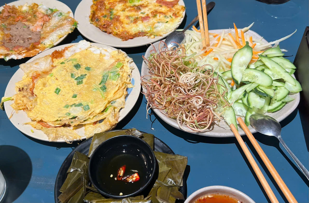 Một món ăn đậm chất Huế mà bạn nên thử chính là bánh khoái tại quán Như Ý (100 Nguyễn Sinh Cung, phường Vỹ Dạ). Món bánh này giống bánh xèo nhưng nhỏ hơn, một phần có giá khoảng 30.000 đồng. Bánh khoái tại đây ngon bởi cái giòn tan của vỏ bánh, vị đậm đà của tôm và giá đỗ bên trong. Khi ăn bạn nên cuốn cùng với rau để món ăn thanh mát và càng hấp dẫn hơn khi được chấm với phần nước sốt sệt có hương vị đậm đà, bùi bùi - Ảnh: @bdat.