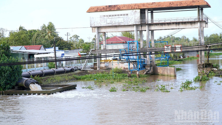 Hệ thống bơm tại cống Trùm Thuật hoạt động liên tục nhưng nước bơm ra lại chảy vào vùng nội đồng, vì cống Trùm Thuật không đóng kín được.