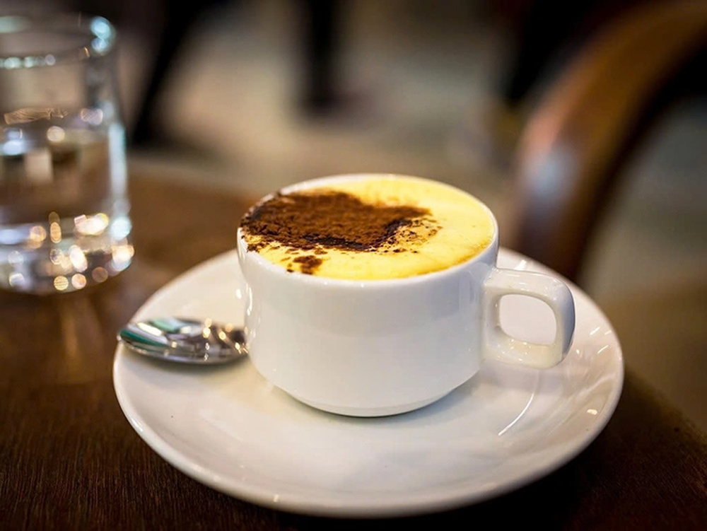 Cà phê trứng - ly cà phê đen nóng phủ bên trên lớp trứng đánh bông béo ngậy và mịn màng. Sự kết hợp nghe có vẻ lạ lùng, nhưng lại mang đến hương vị hài hòa đầy bất ngờ.