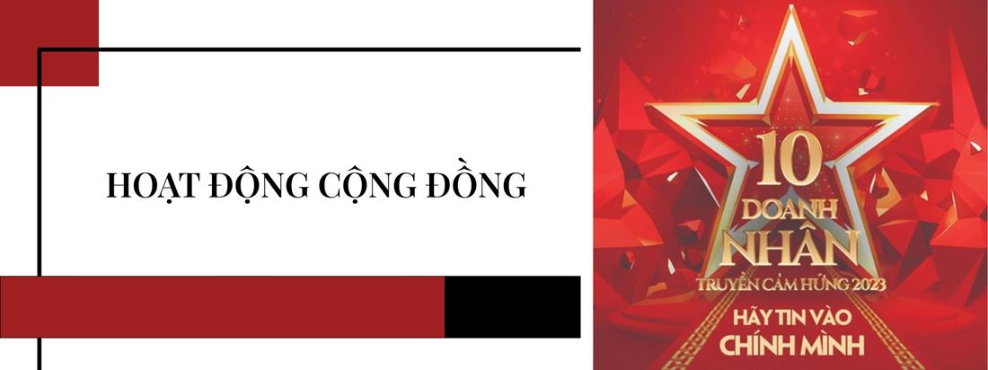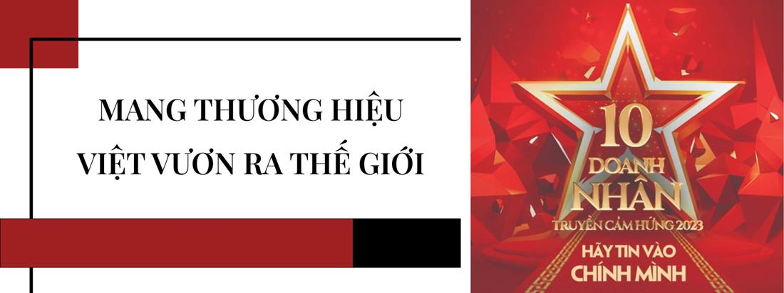 10 doanh nhân truyền cảm hứng 2023 được bình chọn theo 3 hạng mục: “Mang thương hiệu Việt vươn ra thế giới”; “Ra thế giới để mang về”; “Hoạt động vì cộng đồng”. Những hoạt động của họ trong năm qua đã mang lại cảm hứng cho nhiều doanh nghiệp khác đấu tranh cùng thách thức, vươn lên tầm thế giới.