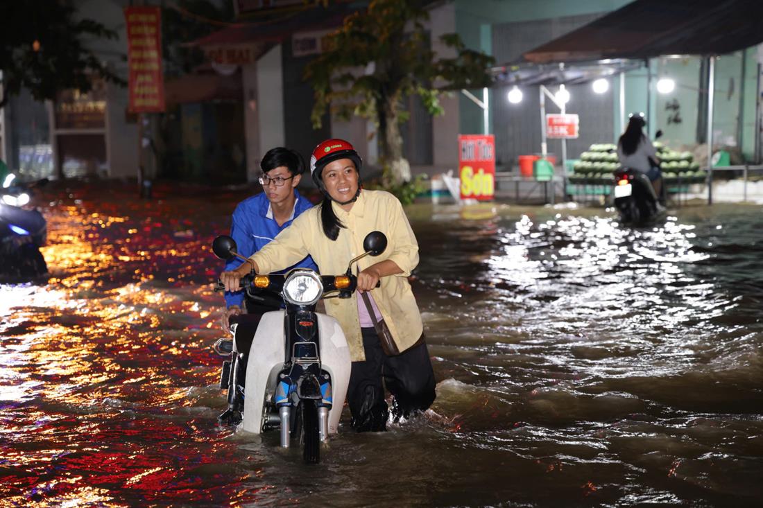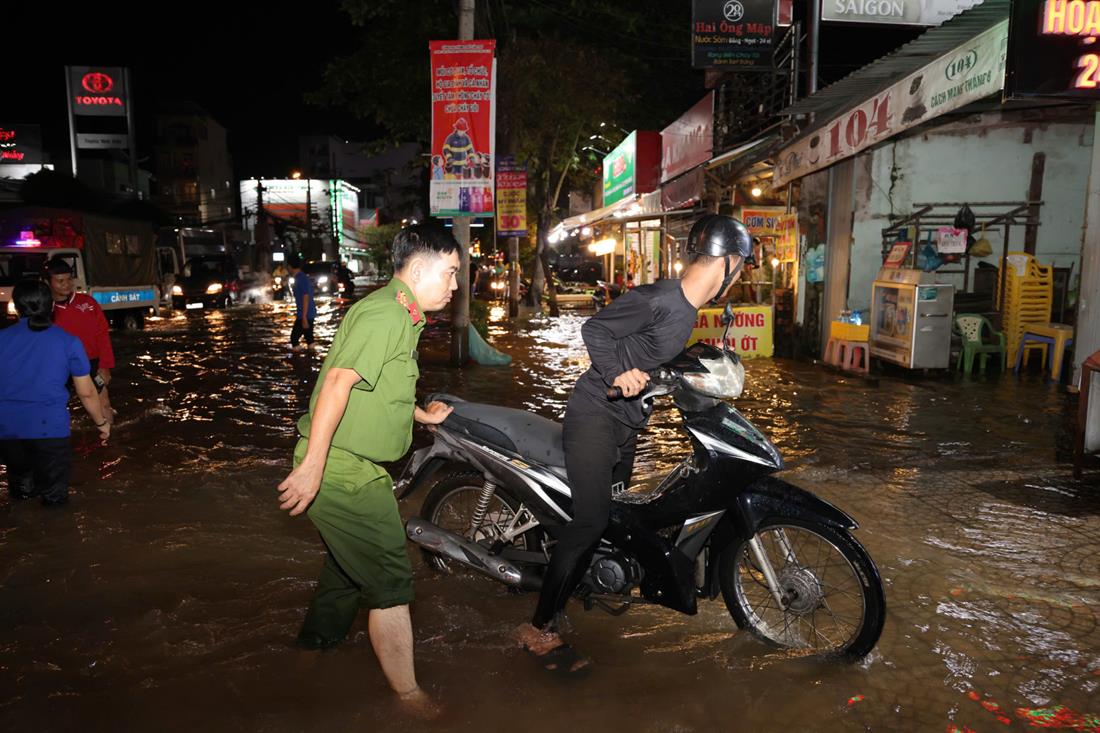 Lực lượng công an, dân phòng, thanh niên, sinh viên… đã có mặt ở các nơi ngập sâu để hỗ trợ bà con đi lại, cứu hộ các phương tiện bị chết máy do ngập nước, đảm bảo an toàn giao thông.