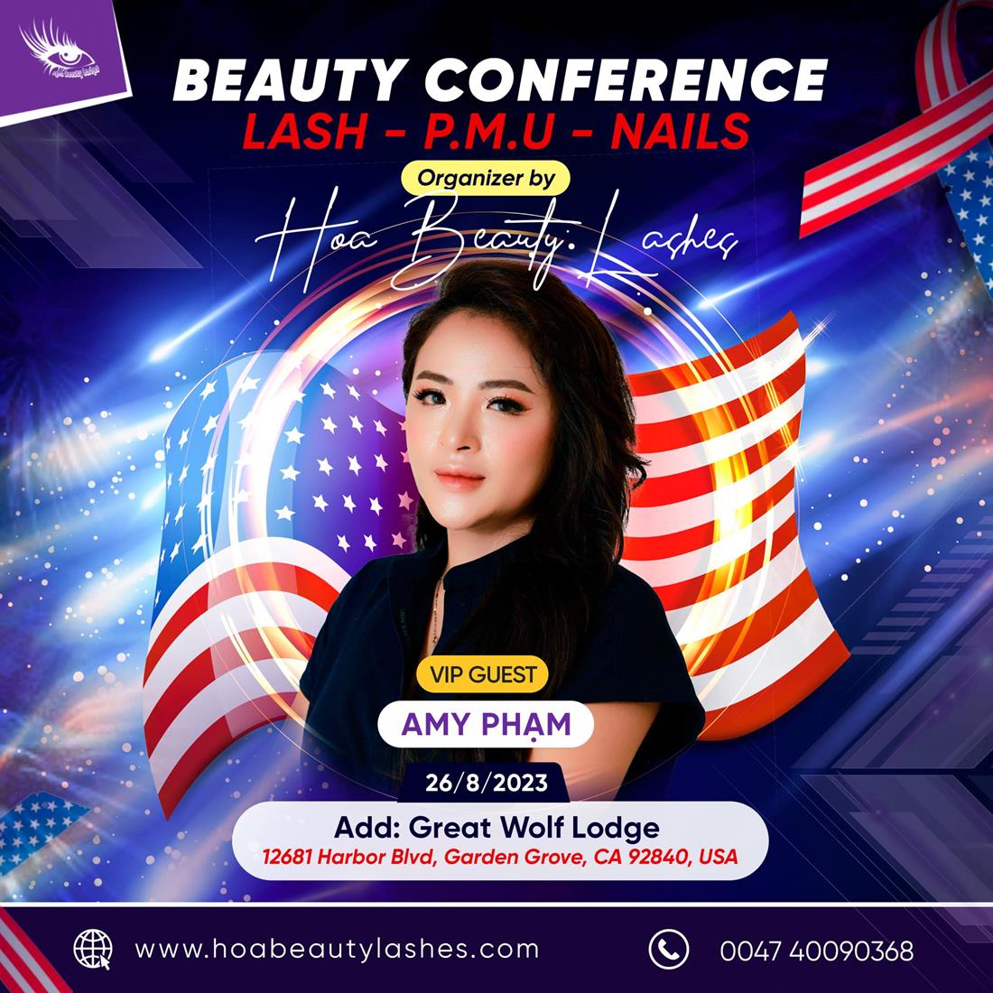 Gần đây nhất, Amy Pham tham gia Hội thảo ngành làm đẹp Lash- P.M.U- Nails do công ty Hoa Beauty Lashes tổ chức lần đầu tiên tại Mỹ. Ở đây các nghệ nhân được cập nhật gần 20 kỹ thuật làm đẹp xu hướng thế giới và kết nối ngành làm đẹp với nhau tại Mỹ.