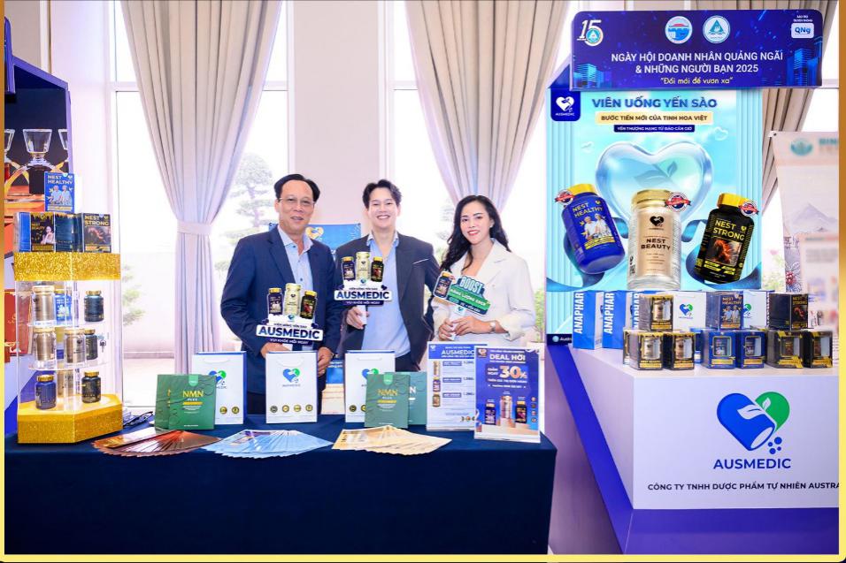 Viên uống yến sào Ausmedic không chỉ thu hút sự chú ý nhờ mẫu mã ấn tượng mà còn ở thông điệp sâu sắc, phù hợp xu hướng. Rất nhiều anh chị doanh nghiệp và khách tham dự đã quan tâm, tin tưởng dùng thử ngay tại sự kiện, góp phần tạo nên bầu không khí sôi nổi và lan tỏa niềm tin vào sản phẩm Việt chất lượng cao.