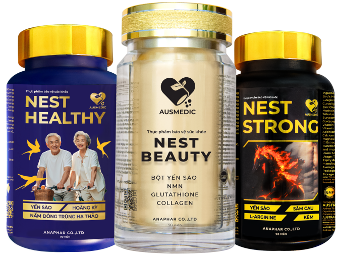 Ausmedic hiện phát triển ba dòng viên uống yến sào: Nest Beauty (hỗ trợ cải thiện tình trạng lão hóa da, kết hợp NMN và Collagen), Nest Strong (hỗ trợ tăng cường sinh lực nam giới với sâm cau, ba kích, L-Arginine) và Nest Healthy (hỗ trợ tăng cường sức khỏe, nâng cao sức đề kháng với hàm lượng yến cao, kết hợp đông trùng hạ thảo, hoàng kỳ và vitamin B).