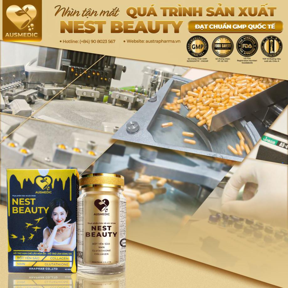 Mỗi viên uống chứa hơn 70% hàm lượng yến sào từ đảo Cần Giờ, nơi có chất lượng yến tốt. Điều Ausmedic tự tin nhất là sự uy tín của sản phẩm vì được sản xuất tại nhà máy đạt chuẩn GMP – chuẩn hoá từ khâu tuyển chọn nguồn nguyên liệu đến khi ra thành phẩm, đạt chứng nhận FDA Hoa Kỳ, đảm bảo chất lượng – an toàn – hiệu quả.