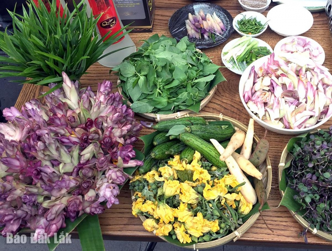 Bông giờ tím ngát, nổi bật giữa mâm rau gia vị.