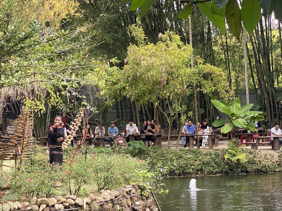 Du khách thưởng thức cà phê, âm nhạc tại Khu du lịch sinh thái Ako Ea (nằm trong Buôn du lịch cộng đồng Akô Dhông).
