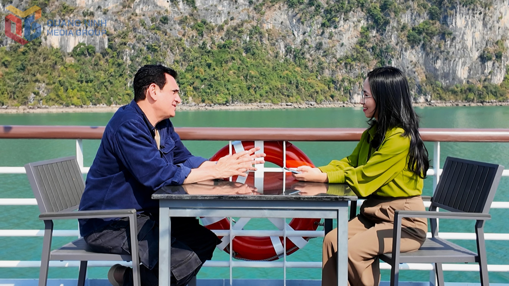 Đạo diễn Omung trả lời phỏng vấn của phóng viên Báo và Phát thanh, Truyền hình Quảng Ninh.
