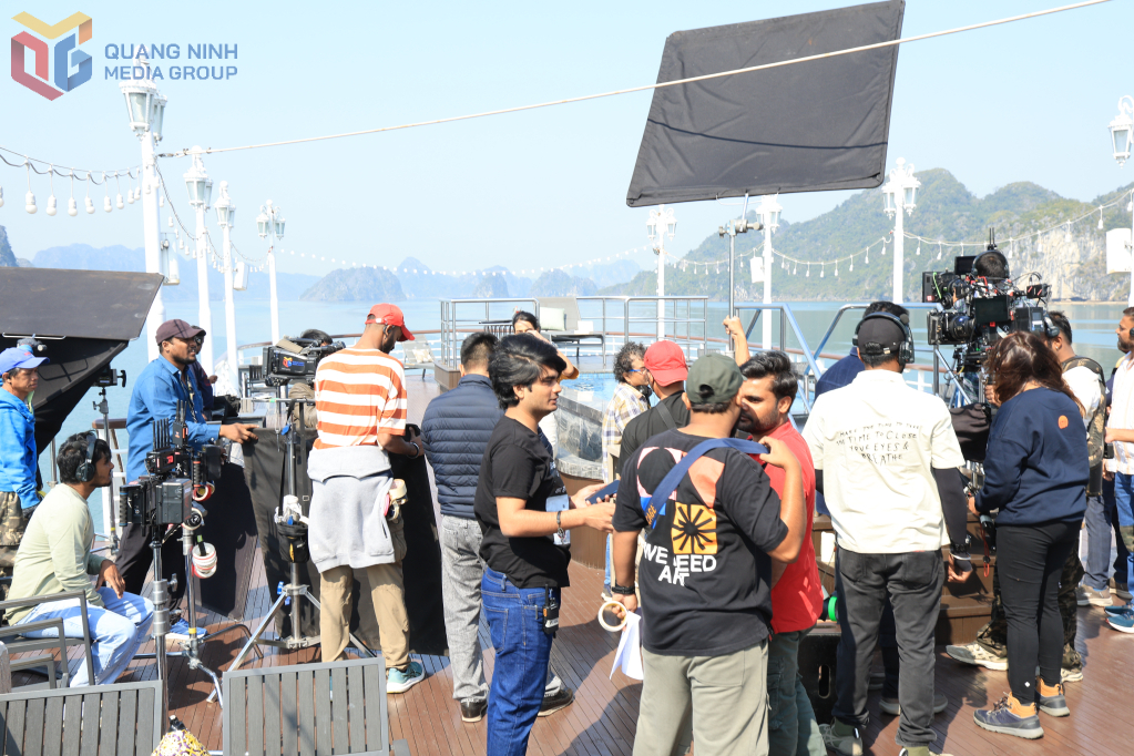 Đoàn làm phim Silaa ghi hình trên Vịnh Hạ Long.