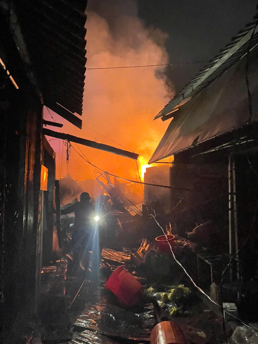 Người dân bất lực nhìn đám cháy thiêu rụi hàng hóa, tài sản. Ảnh: Người dân cung cấp.