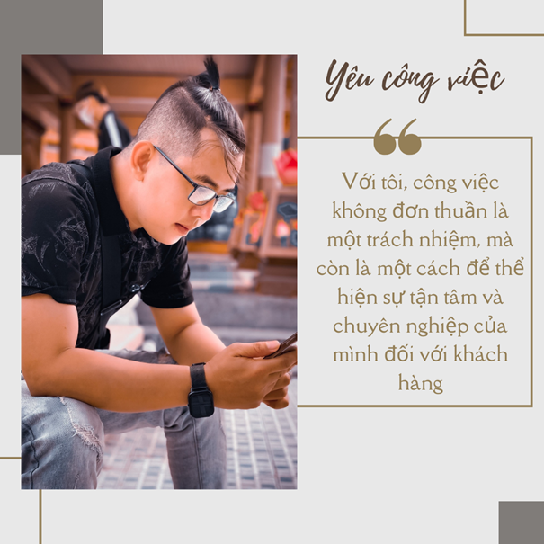 Để dùng ba từ khái quát rõ nét về anh, đó sẽ là: Yêu công việc, Tự tin và thành công.