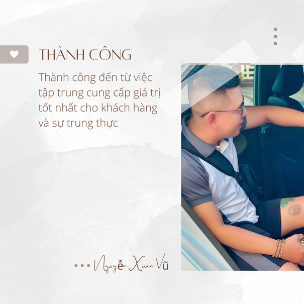 Để có sự phát triển như hôm nay, Vũ đã tìm cho mình hướng đi chuyên nghiệp hơn, mình đã tìm hiểu kỹ những vật phẩm chất lượng và đã đi học hỏi đầy đủ kiến thức cũng như tài chính mới thành lập thương hiệu cá nhân. Sau đó, Vũ đã hướng dẫn lại cho tất cả hệ thống của mình bằng sự nhiệt huyết và lửa đam mê với những gì mình đã học được nhằm đưa hệ thống phát triển nhanh chóng và nhân bản được thủ lĩnh. Với Vũ làm việc gì cũng vậy, khi “cái tâm” được đưa ra như một thước đo chuẩn mực về giá trị chất lượng công việc thì chúng ta sẽ thành công.
