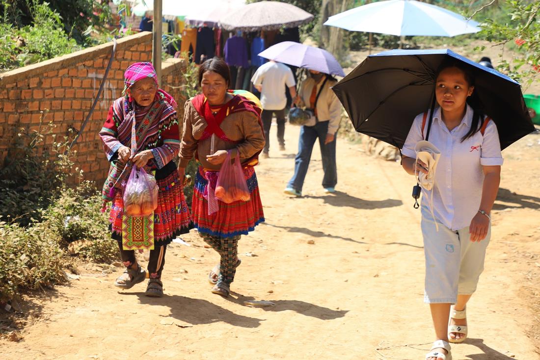 Chị Liều Thị Xa (người địa phương, chủ một sạp quần áo ở chợ phiên) cho biết: “Tôi từng bán ở các chợ phiên khác trong vùng, nhưng khi địa phương xây dựng chợ, vợ chồng tôi đã về đây bán”.