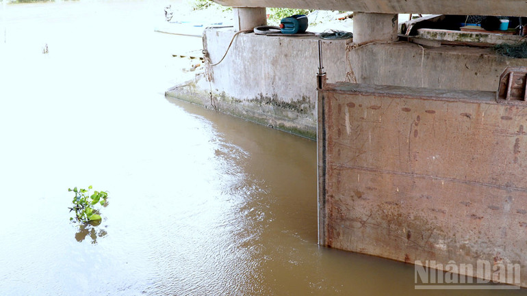 Hệ thống bơm tại cống Trùm Thuật hoạt động liên tục nhưng nước bơm ra lại chảy vào vùng nội đồng, vì cống Trùm Thuật không đóng kín được.