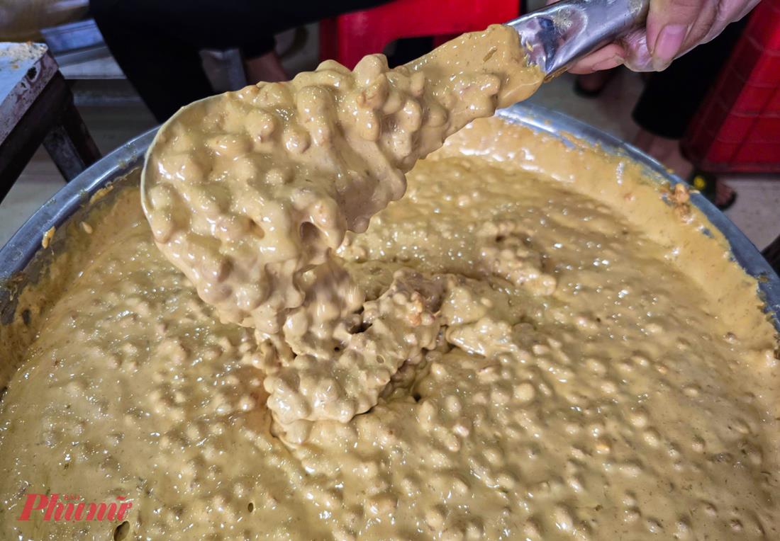 Công đoạn nấu mật được xem là “linh hồn” của cu đơ. Mật mía phải đun lửa nhỏ, khuấy đều tay để đạt độ sánh keo vừa chuẩn, không cháy, không khê. Khi mật “tới”, đậu phộng và gừng được cho vào, đảo nhanh để vị ngọt, bùi, cay hòa quyện tròn đầy.