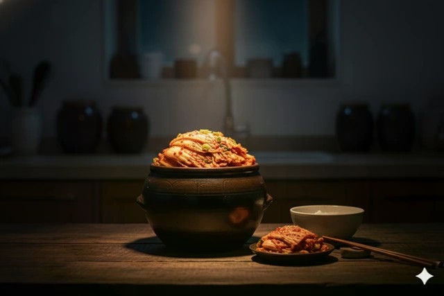Nghiên cứu mới phát hiện kim chi có thể cải thiện đường huyết, giảm mỡ máu và hạ huyết áp. Ảnh: AI.