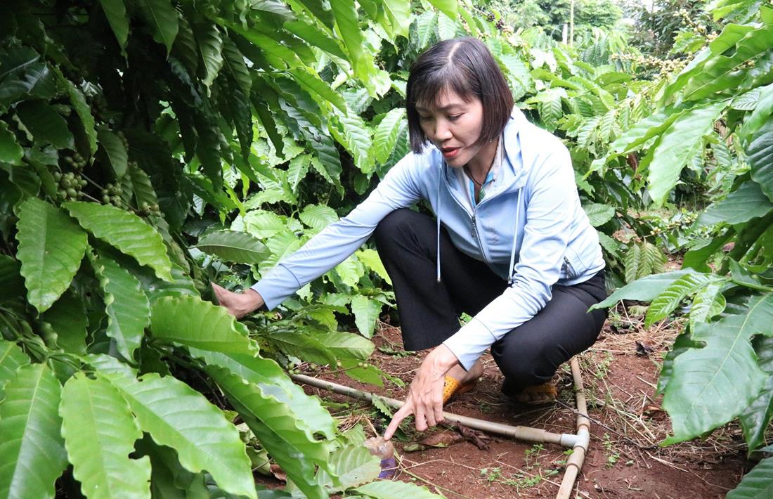 Nhờ kỹ thuật trồng xen canh hợp lý cây cà phê với các loại cây khác (cây hồ tiêu, cây muồng đen,…), sản lượng cà phê của nông trại gia đình chị Nhung trong năm 2022 đạt 3,5 tấn nhân/ ha (cao hơn mức 2,5 tấn/ ha trước đó), sản lượng tiêu đạt 2,5 tấn/ ha và sầu riêng 1,5 tấn, góp phần cải thiện thu nhập của gia đình.