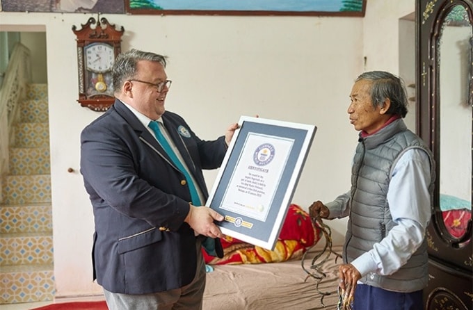 Craig Glenday trao chứng nhận Kỷ lục Guinnesss cho ông Huyền. Ảnh: Guinness World Record.