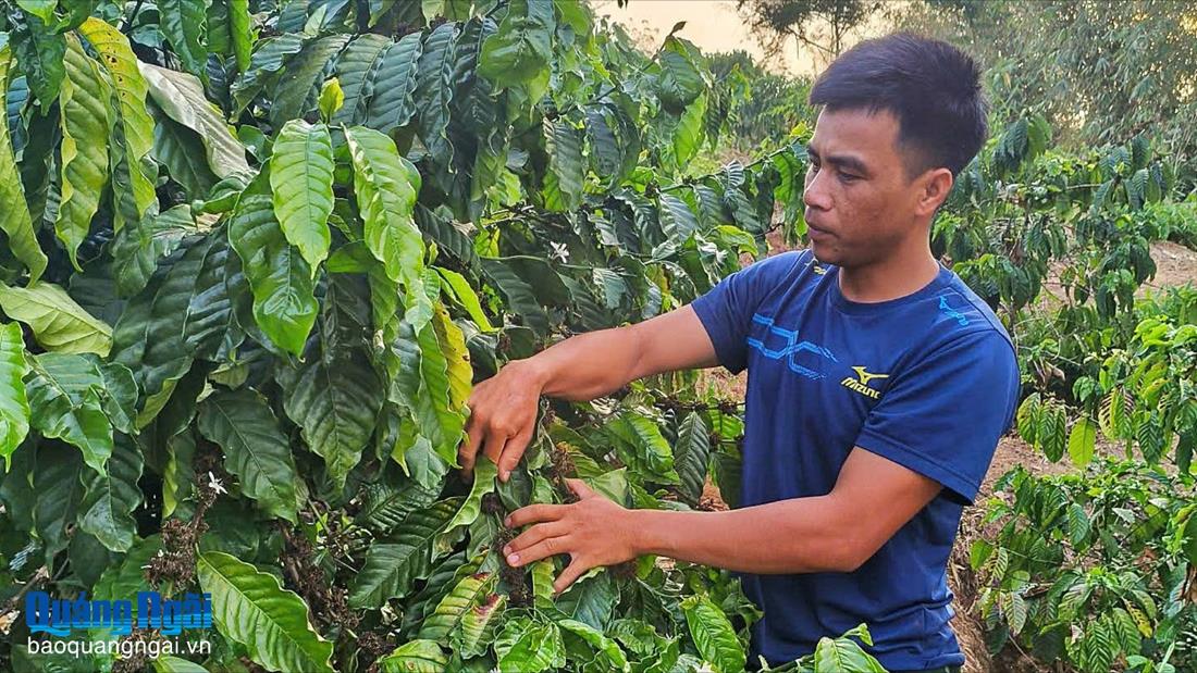 Năm 2018, anh mạnh dạn vay 30 triệu đồng từ Ngân hàng Chính sách xã hội để chuyển đổi 2ha mì kém hiệu quả sang trồng cà phê. Nhờ tham gia các lớp tập huấn, anh biết cách, áp dụng khoa học, kỹ thuật vào sản xuất nên vườn cà phê phát triển ổn định.