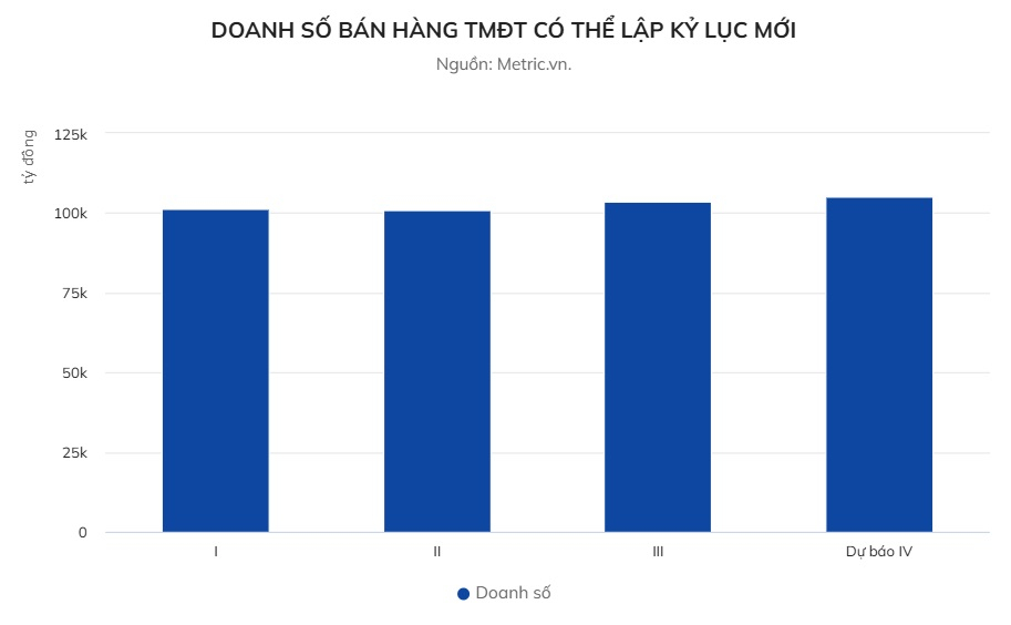 Dự báo trong quý IV/2025, tổng doanh số thị trường TMĐT Việt Nam dự kiến đạt 105.000 tỷ đồng, với sản lượng khoảng 1,07 triệu sản phẩm, tăng lần lượt 1% và 8% so với quý III.