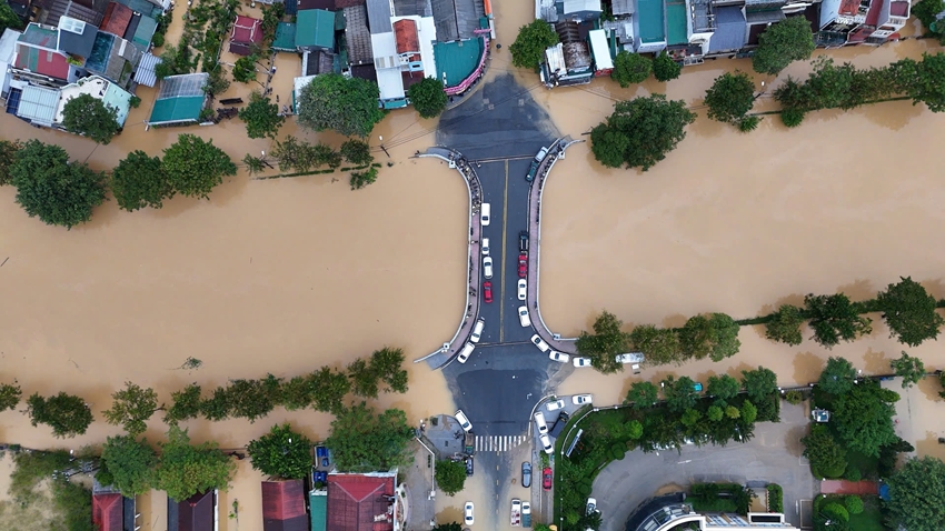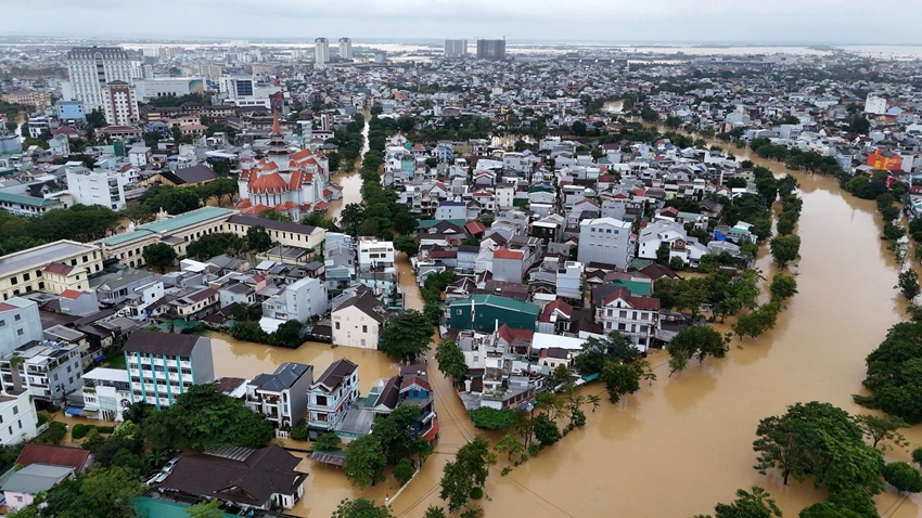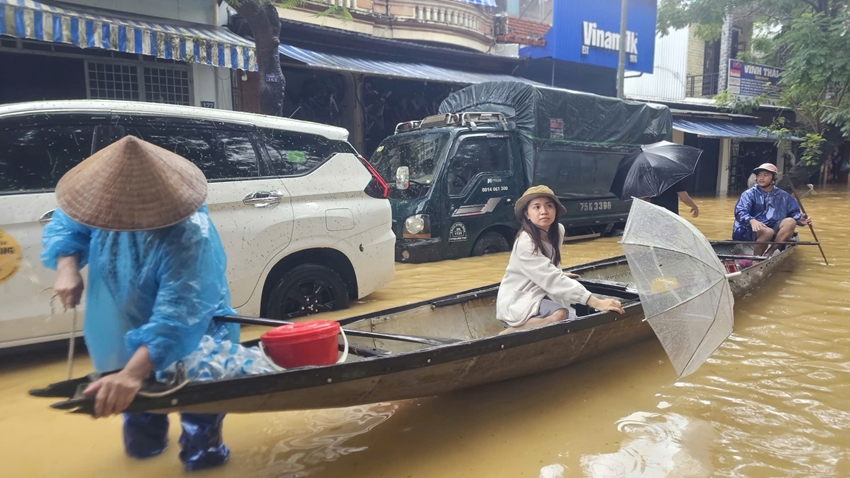 Khu vực phường Hóa Châu chìm trong biển nước mênh mông.