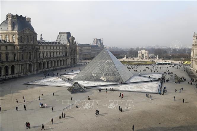 Tòa kim tự tháp bằng kính ở lối vào Bảo tàng Louvre, Paris (Pháp). Ảnh tư liệu: AFP/TTXVN.