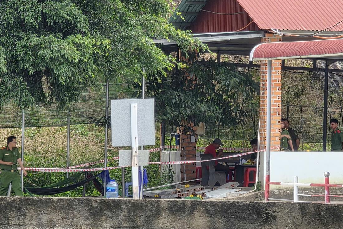 Cơ quan công an khám nghiệm hiện trường vụ sập tường căn tin tại Lâm Đồng.