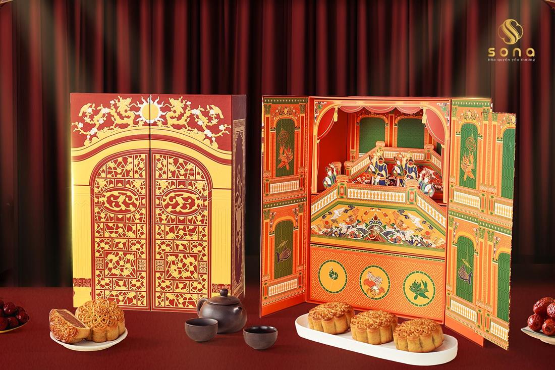 Lấy cảm hứng từ con người và văn hóa Việt Nam, các hộp quà Trung thu của Sona được thiết kế độc đáo, tinh xảo và sang trọng. Từng chi tiết hoa văn, họa tiết đều khắc họa những nét đẹp truyền thống như Trống đồng, Nhã nhạc Cung Đình, gia đình đoàn viên, cảnh sắc quê hương… để mỗi món quà không chỉ là những chiếc bánh Trung thu mà còn là niềm gắn kết, tình yêu với quê hương và dân tộc.