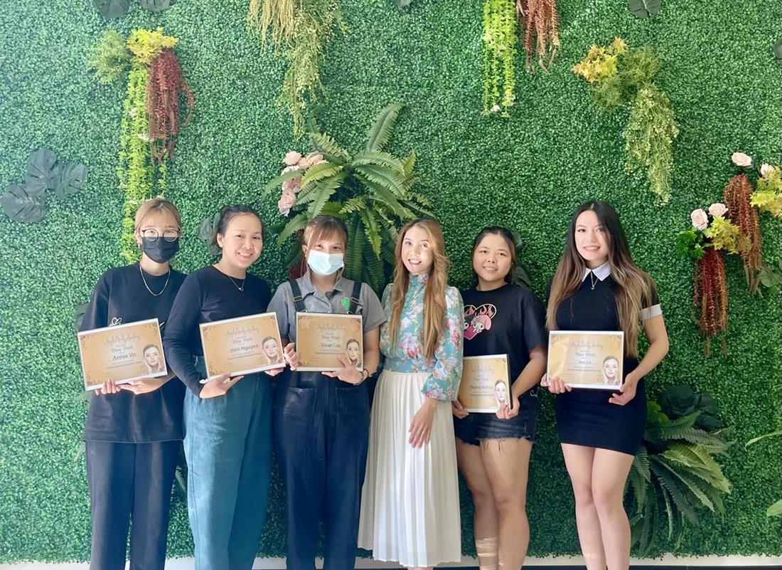 Hình ảnh một khóa học nối mi chuyên nghiệp tốt nghiệp cùng Master Thúy Đinh.