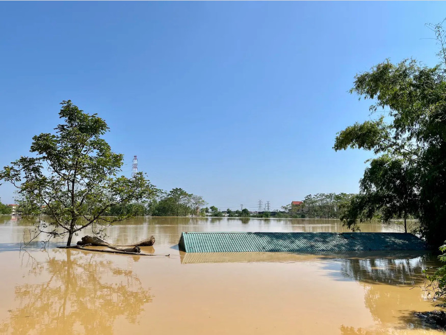 Mực nước sông lên cao đã nhấn chìm khu vực dân cư bên ngoài bãi sông. Hàng trăm ngôi nhà ngập đến tận mái tôn. Cuộc sống thường nhật của hơn 1.000 người dân các thôn xóm bỗng chốc bị xáo trộn.