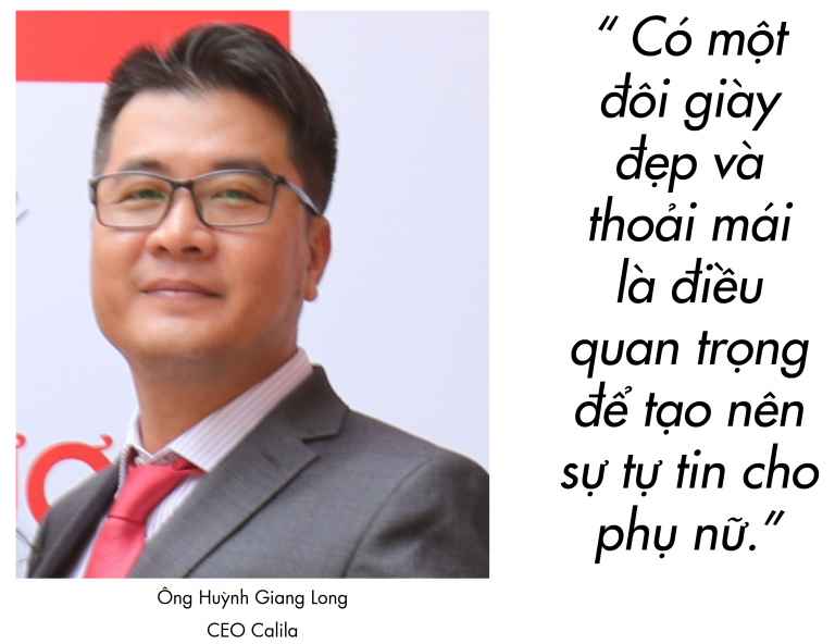 Ông Huỳnh Giang Long, CEO của Calila, cho biết: “Một đôi giày đẹp và thoải mái là điều quan trọng để tạo nên sự tự tin cho phụ nữ. Các cô gái sẽ không thể tươi cười hay có thần thái tốt nếu đi một đôi giày không ổn. Vì thế, bên cạnh tính thời trang, chúng tôi cũng chú trọng nhiều vào chất lượng của đôi giày, làm sao để đôi chân của các cô gái không chịu áp lực dù mang giày gót nhọn Calila trong cả ngày dài”.