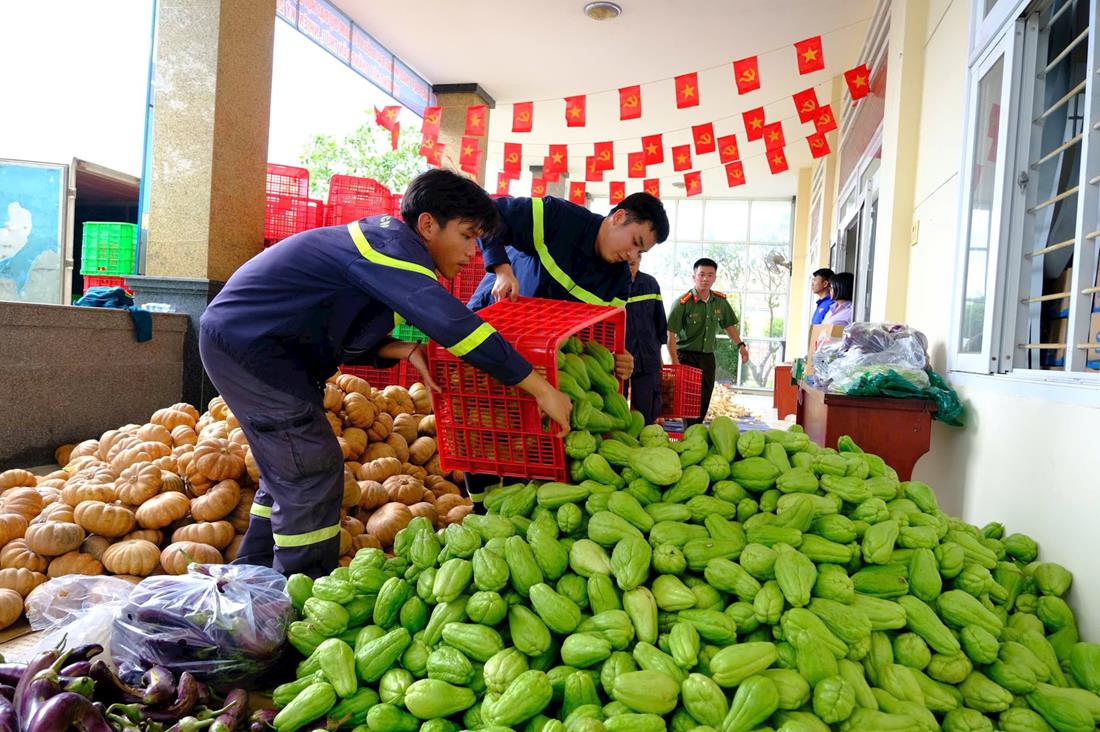 Cấp phát rau, củ, quả cho bà con vùng thiên tai
