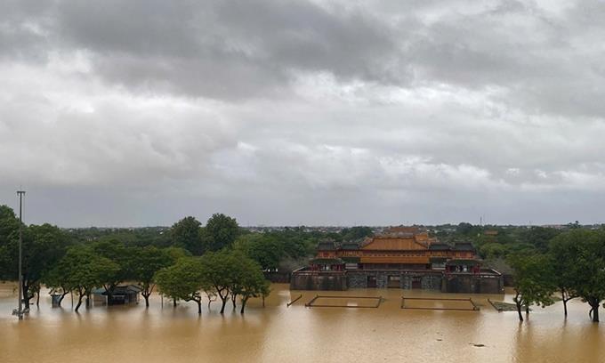 Một nhóm thợ đóng tàu đang làm việc bên bờ sông Nho Quế dưới cây gạo rực đỏ.