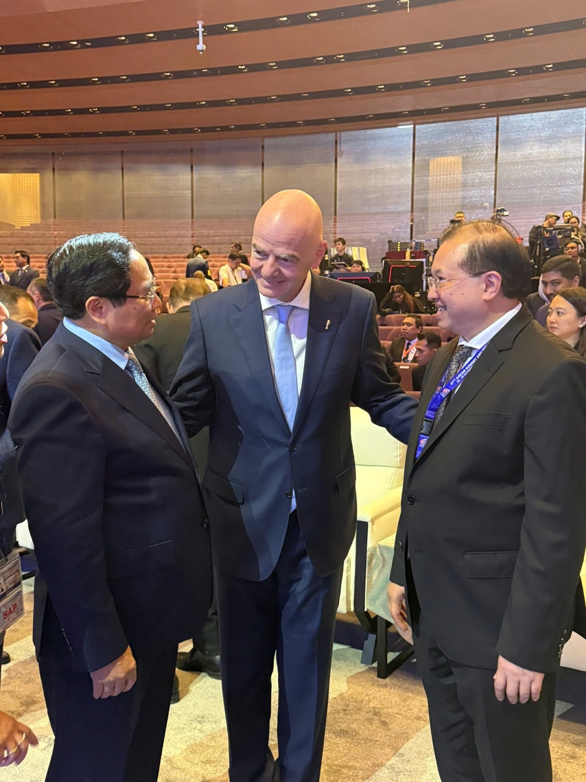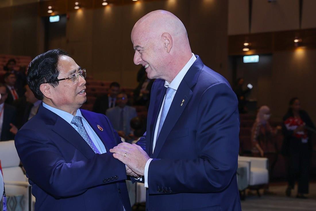 Đây là thông tin tại cuộc gặp gỡ giữa Thủ tướng Chính phủ Phạm Minh Chính với Chủ tịch Liên đoàn bóng đá thế giới (FIFA) - Gianni Infantino chiều 26/10. Cuộc gặp diễn ra tại Hội nghị Cấp cao ASEAN lần thứ 47 và các hội nghị cấp cao liên quan tại Kuala Lumpur (Malaysia).