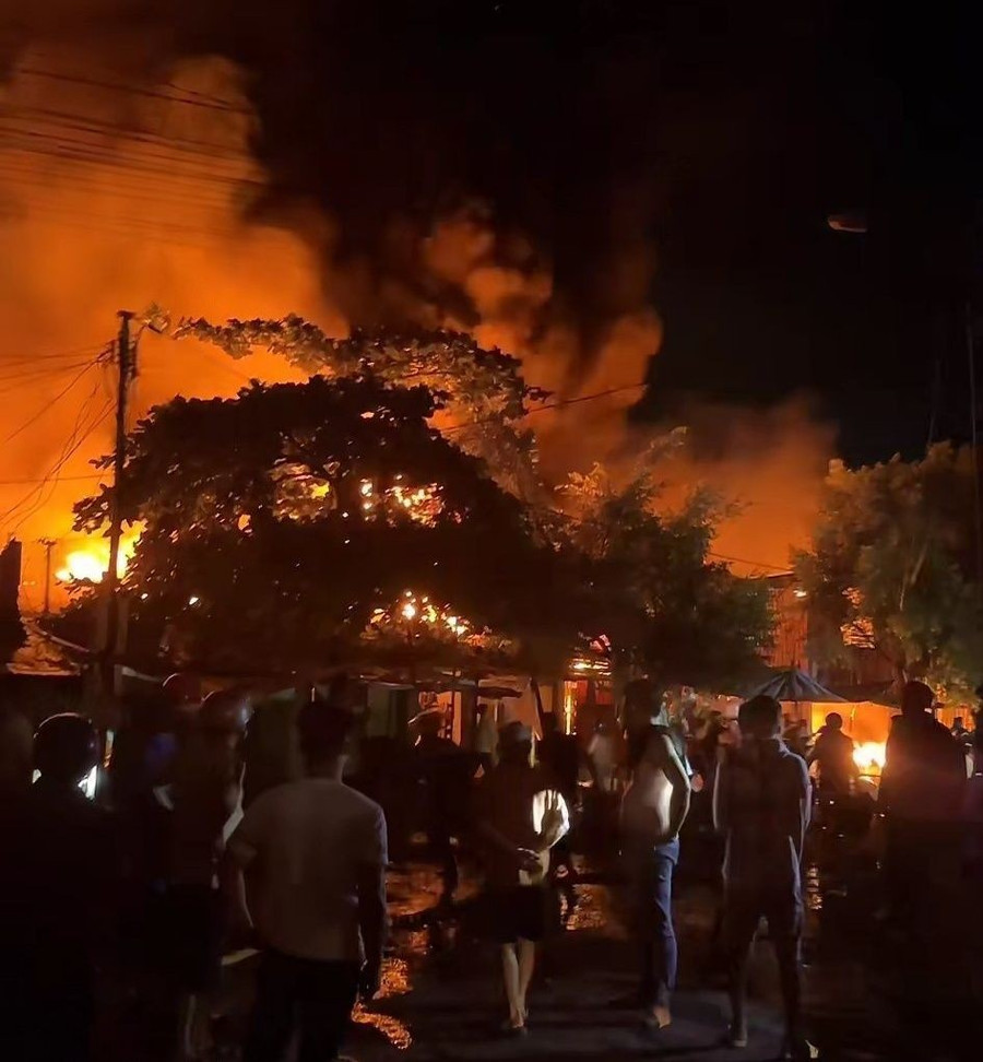 Người dân bất lực nhìn đám cháy thiêu rụi hàng hóa, tài sản. Ảnh: Người dân cung cấp.