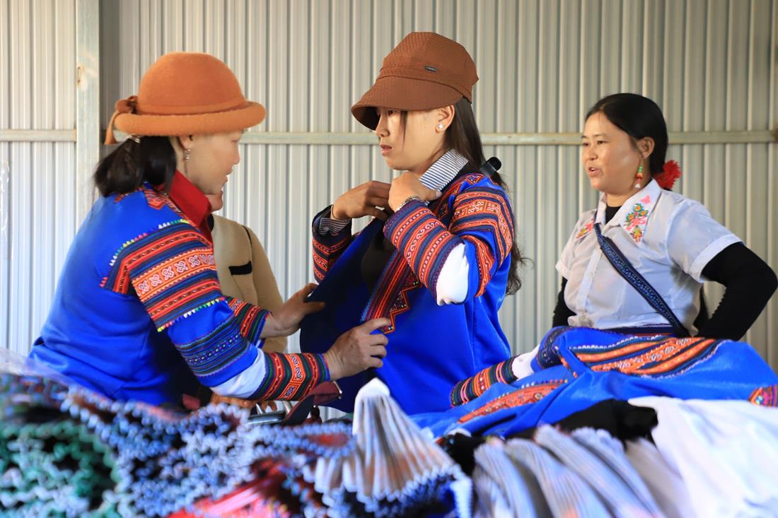 Chị Liều Thị Xa (người địa phương, chủ một sạp quần áo ở chợ phiên) cho biết: “Tôi từng bán ở các chợ phiên khác trong vùng, nhưng khi địa phương xây dựng chợ, vợ chồng tôi đã về đây bán”.