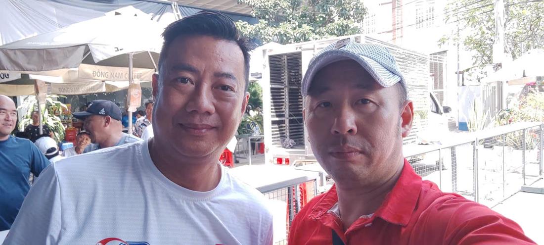 HLV Phạm Long (áo đỏ) và thầy Trương Quang Vũ